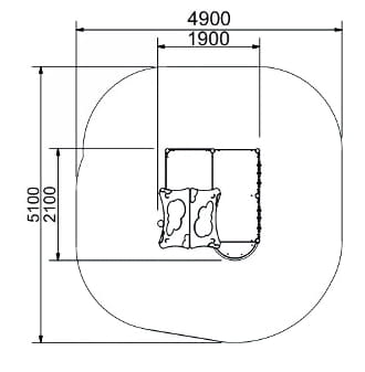 Strefa bezpieczeństwa: 4,9 x 5,1 m