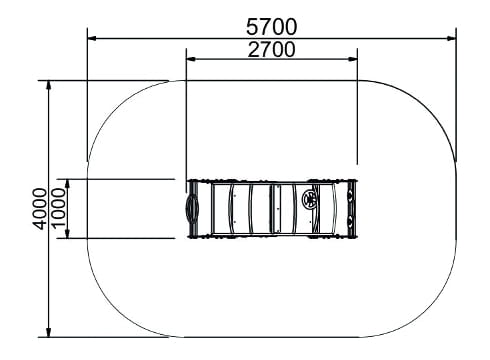 Strefa bezpieczeństwa: 5,7 x 4,0 m