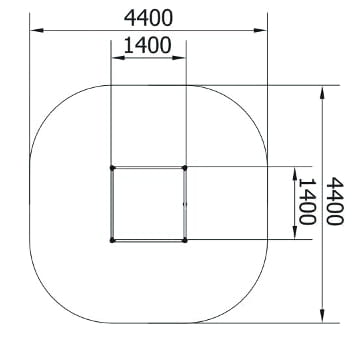Strefa bezpieczeństwa: 4,4 x 4,4 m