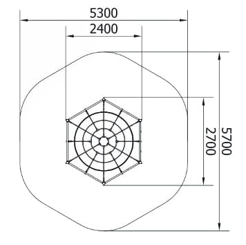 Strefa bezpieczeństwa: 5,3 x 5,7 m