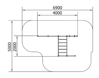 Strefa bezpieczeństwa: 5,0 x 6,9 m